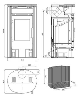 Feuerraum Höhe x Breite x Tiefe: 320 x 360 x 310 mm