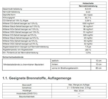 sehr gute Verbrennung, erfüllt Anforderungen der 2.Stufe der BlmSchV