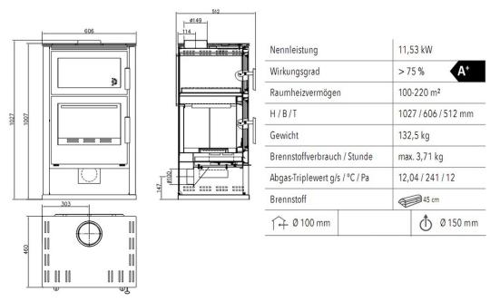 Geeignete Brennstoffe: Scheitholz bis 45 cm Länge
